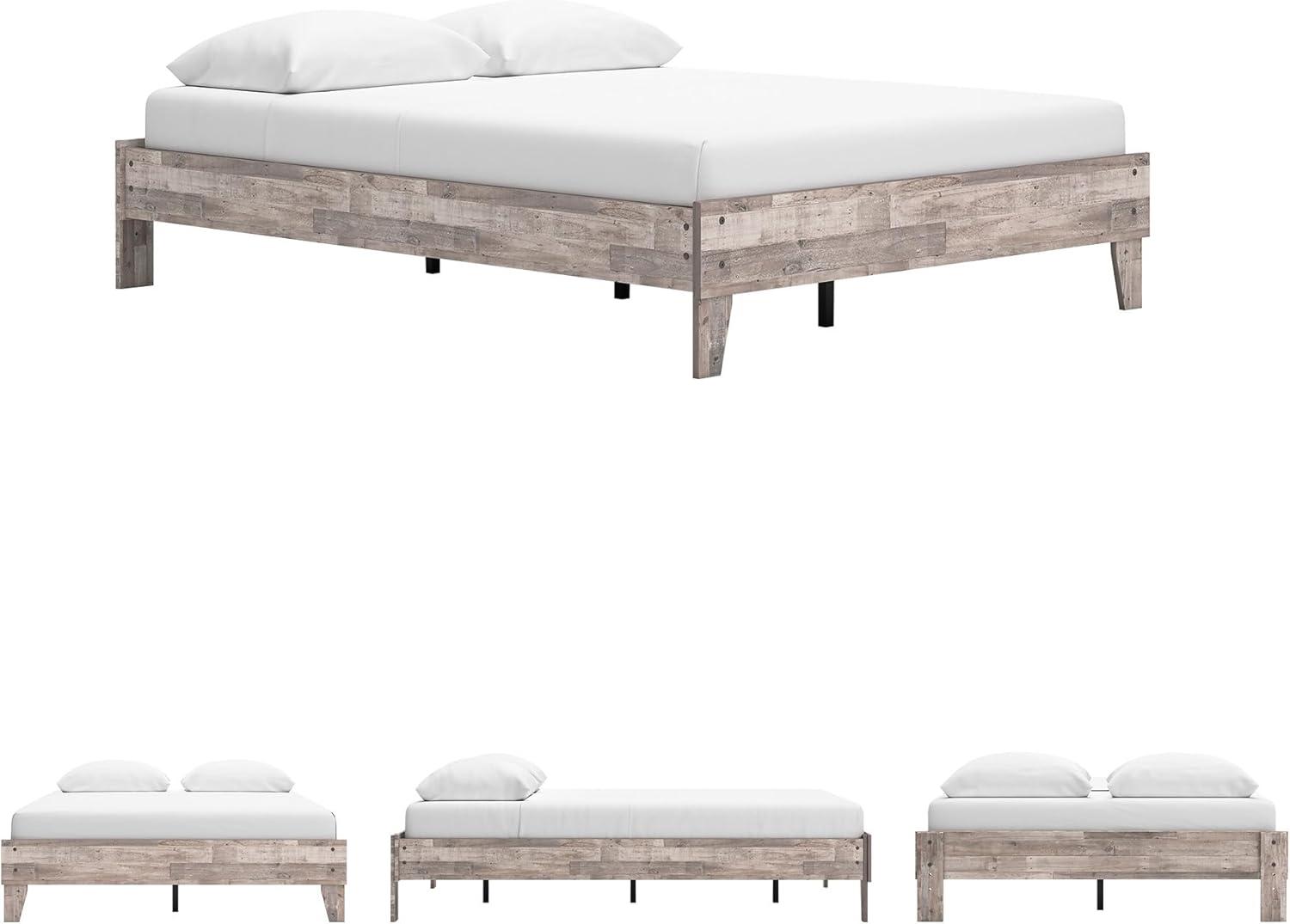 Signature Design by Ashley Socalle Casual Queen Platform Bed with Metal Slats, No Box Spring Needed, Black(Rustic Natural)