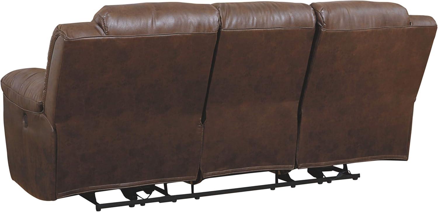 Signature Design by Ashley Stoneland Faux Leather Power Reclining Sofa, Light Brown(Brown)
