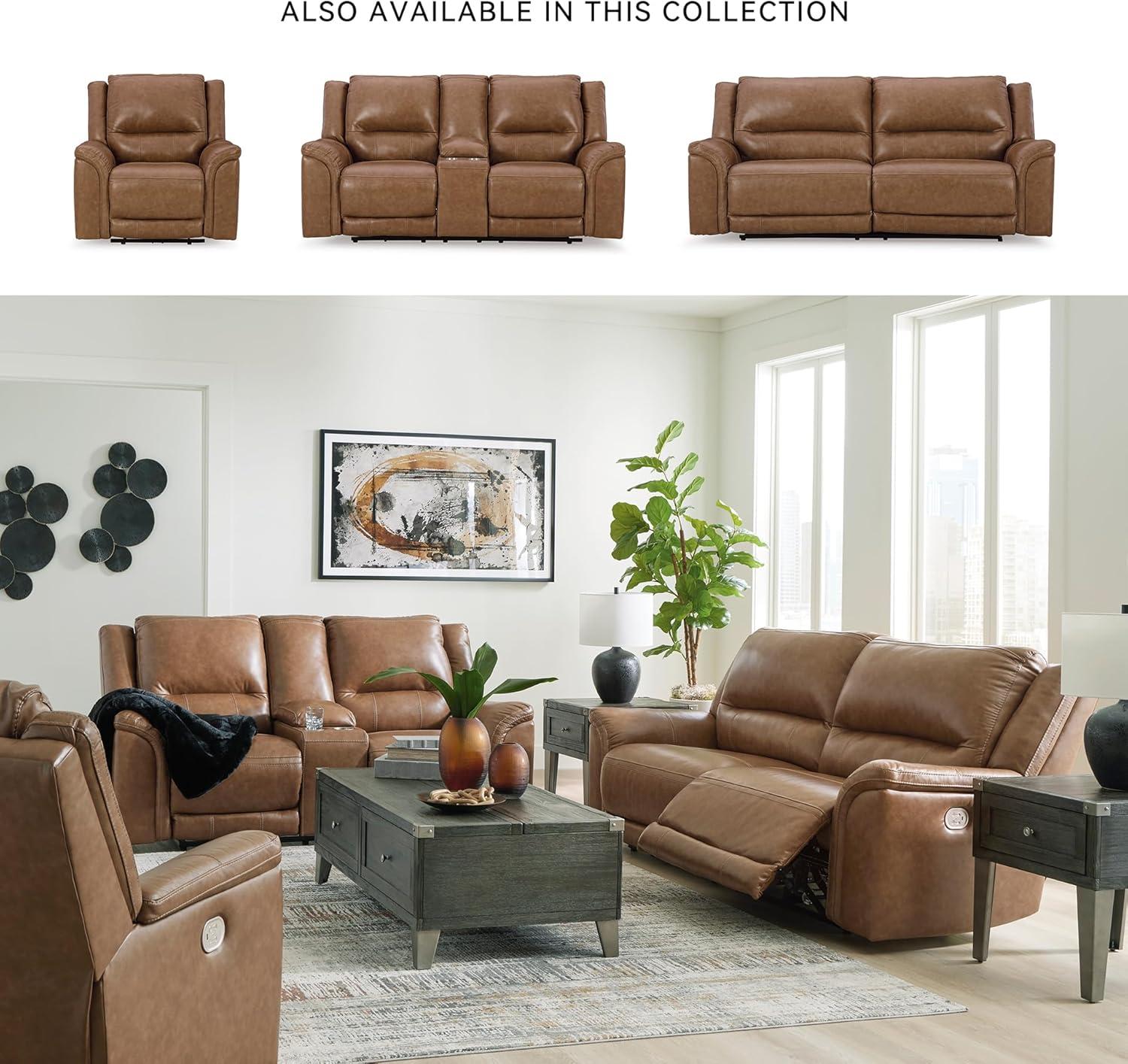 Signature Design by Ashley Trasimeno Contemporary Leather Match Wall Hugger Power Recliner with Adjustable Headrest and USB Ports, Light Brown