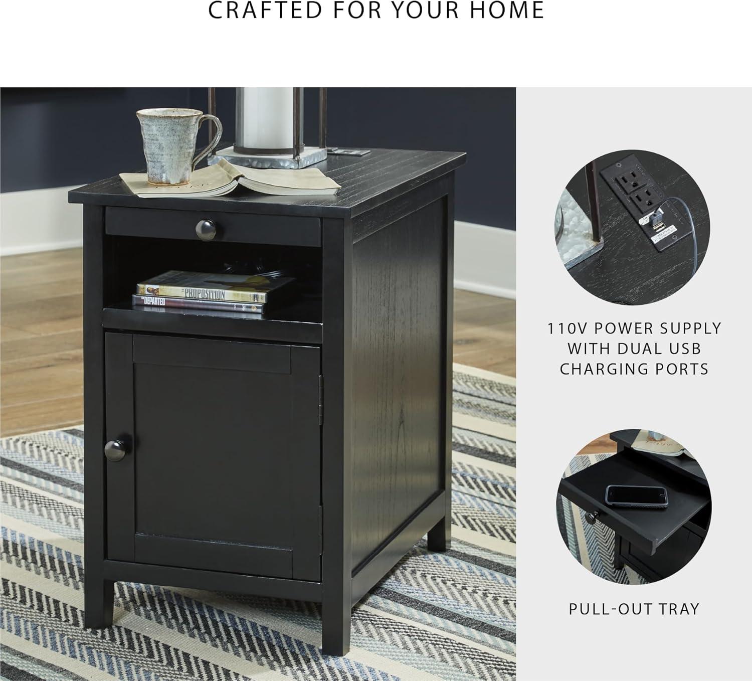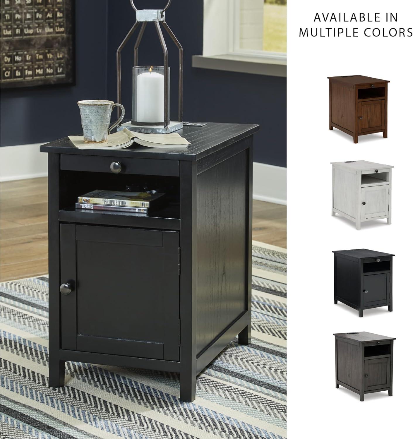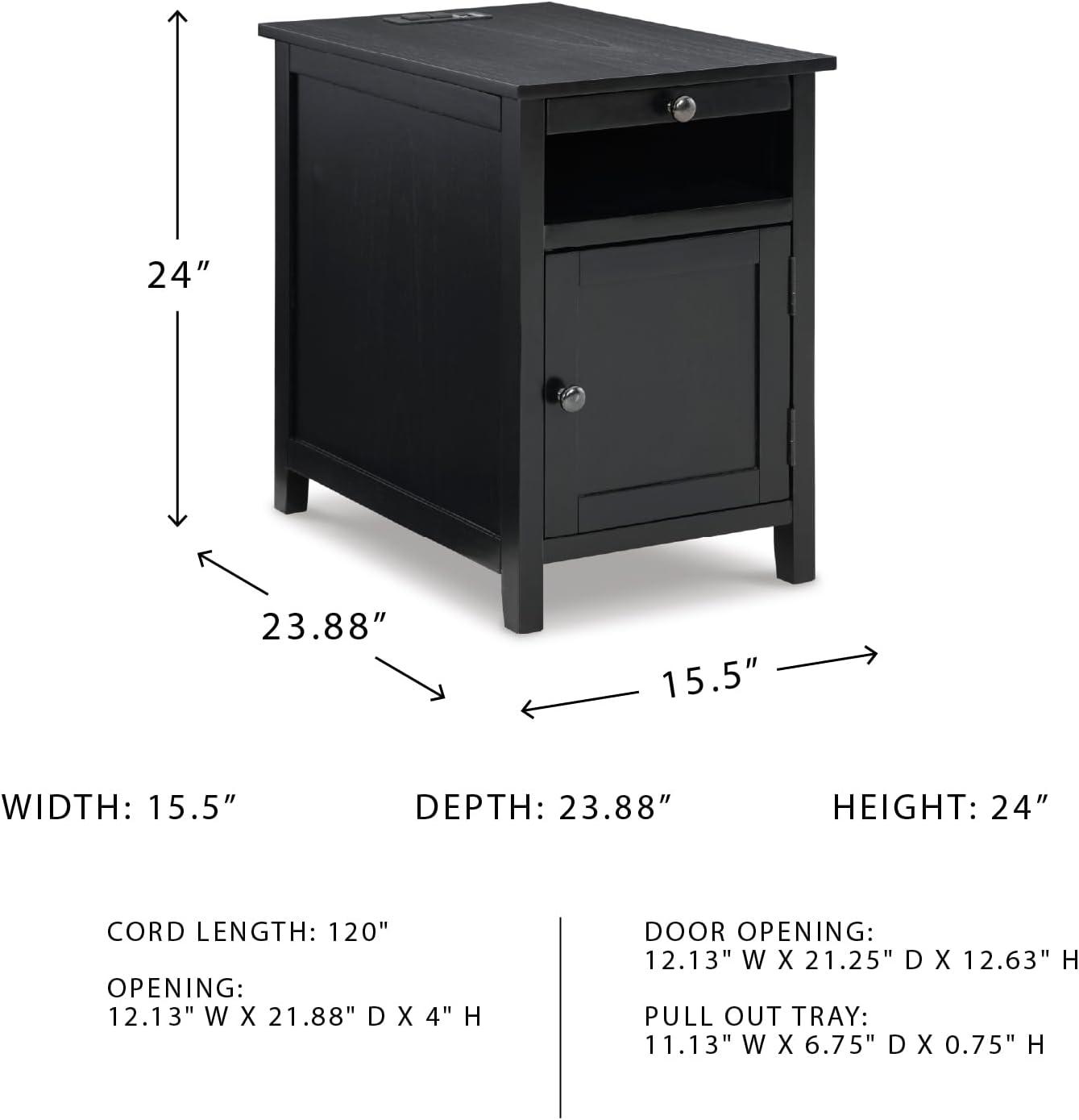 Signature Design by Ashley Treytown Casual Compact Chairside End Table with a Storage Cabinet, Open Cubby Shelf, Pull-Out Tray & USB Charging Ports, Brown(Black)