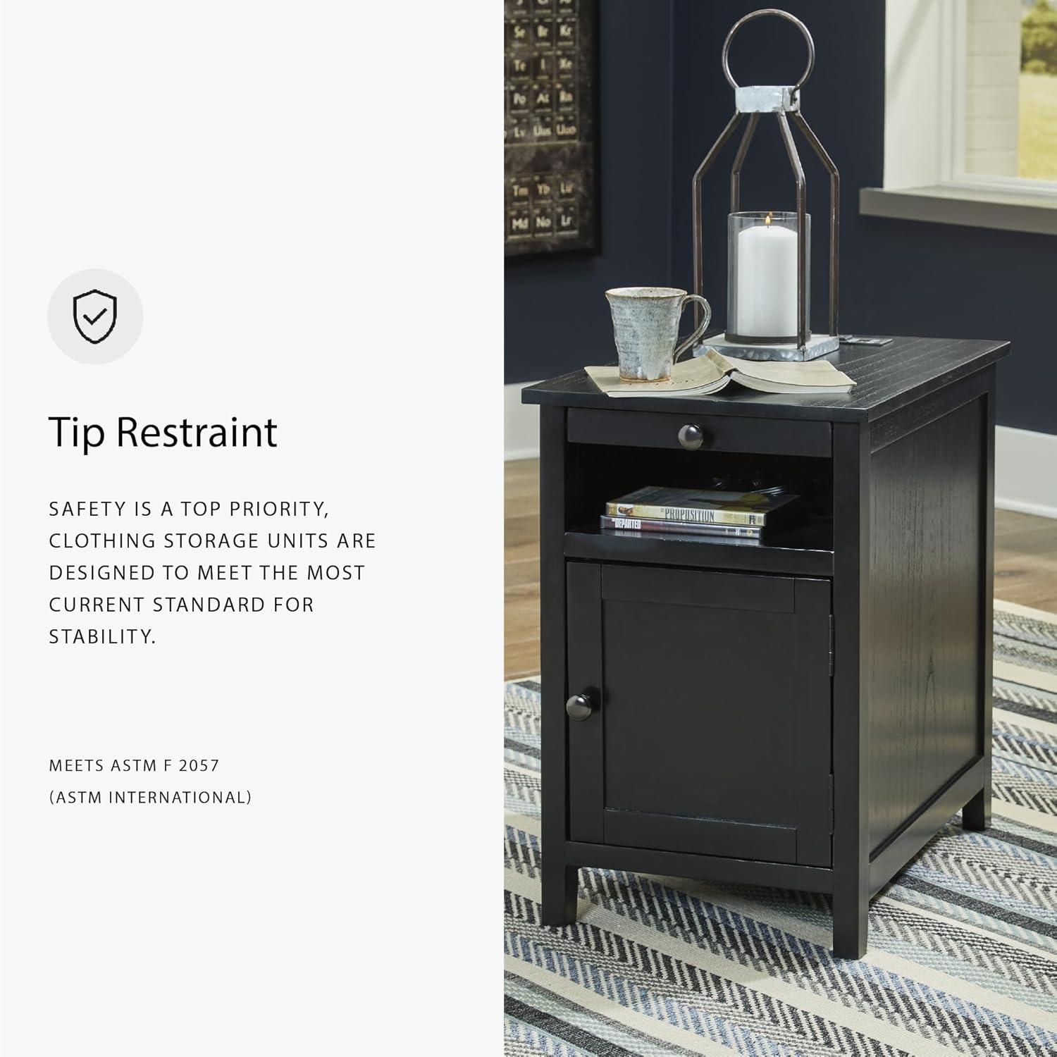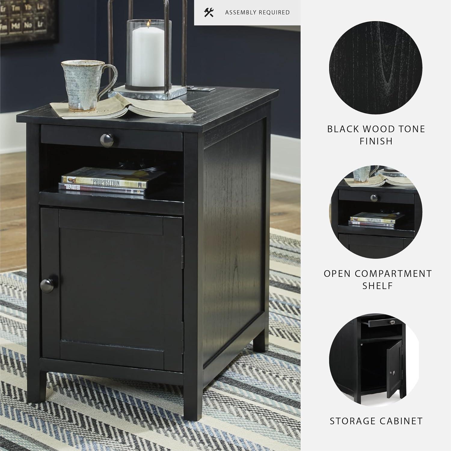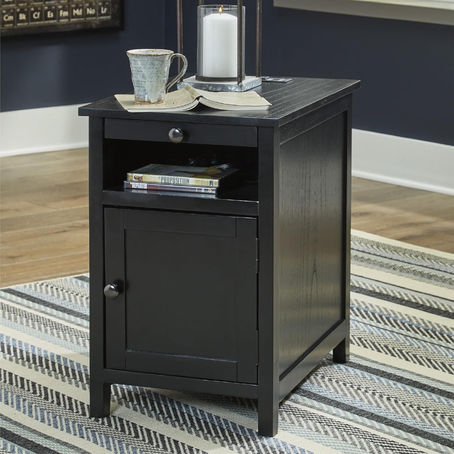Signature Design by Ashley Treytown Casual Compact Chairside End Table with a Storage Cabinet, Open Cubby Shelf, Pull-Out Tray & USB Charging Ports, Brown(Black)