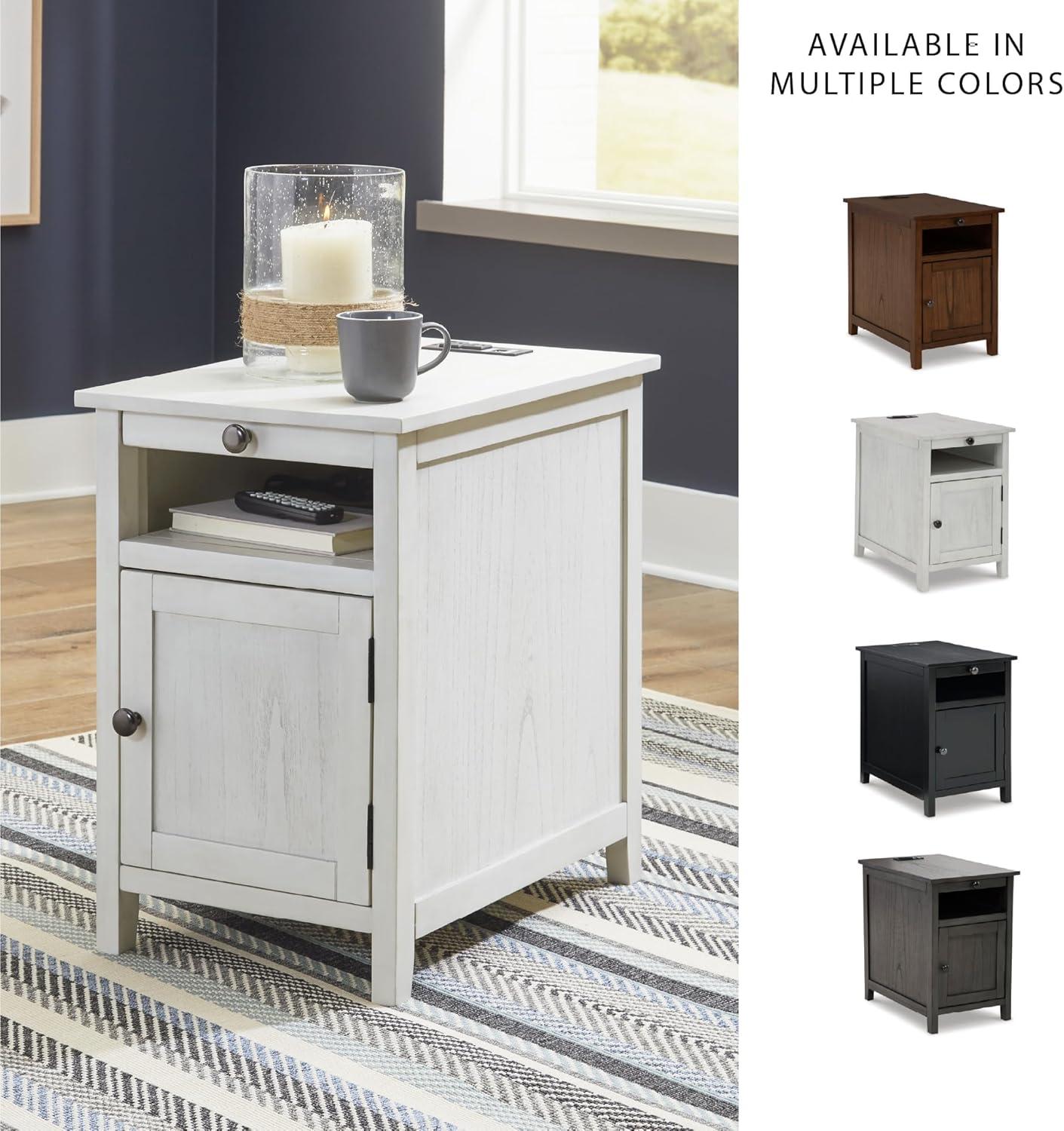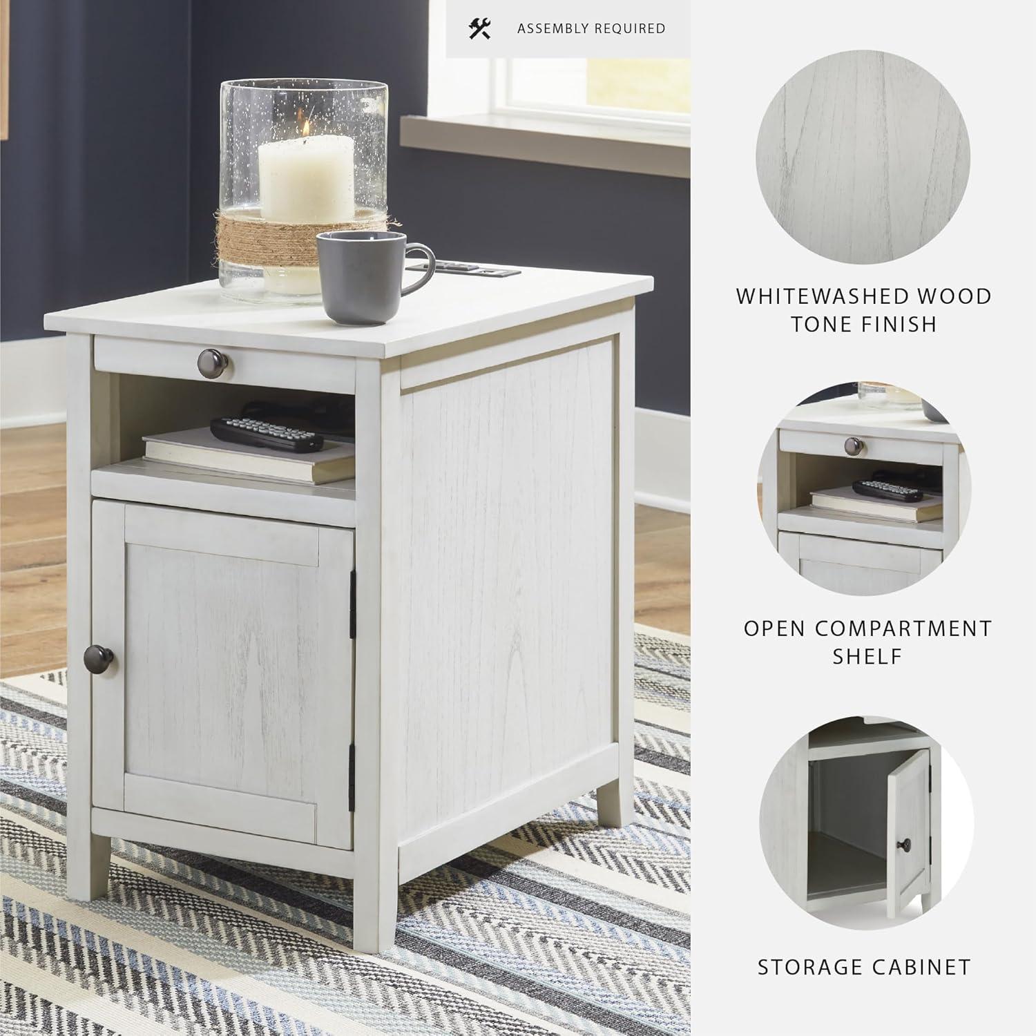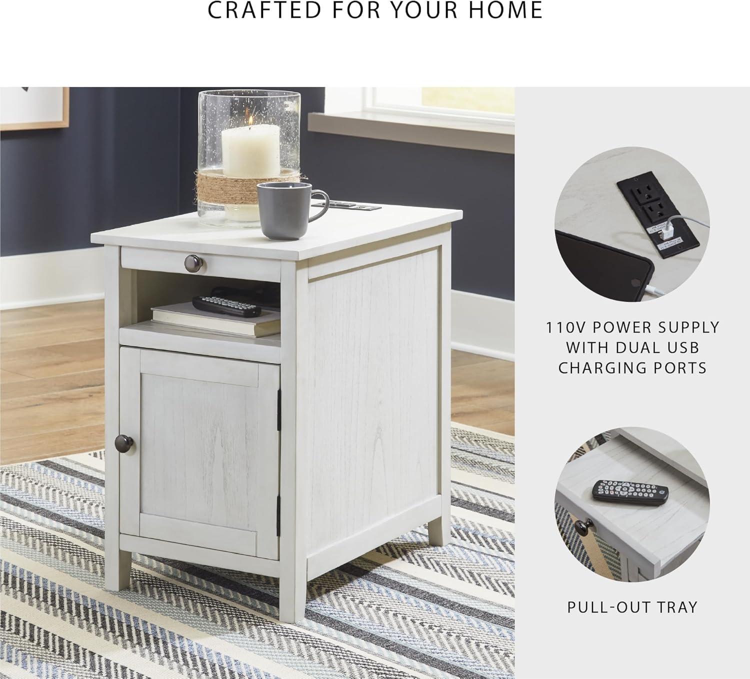Signature Design by Ashley Treytown Casual Compact Chairside End Table with a Storage Cabinet, Open Cubby Shelf, Pull-Out Tray & USB Charging Ports, Brown(Whitewash)