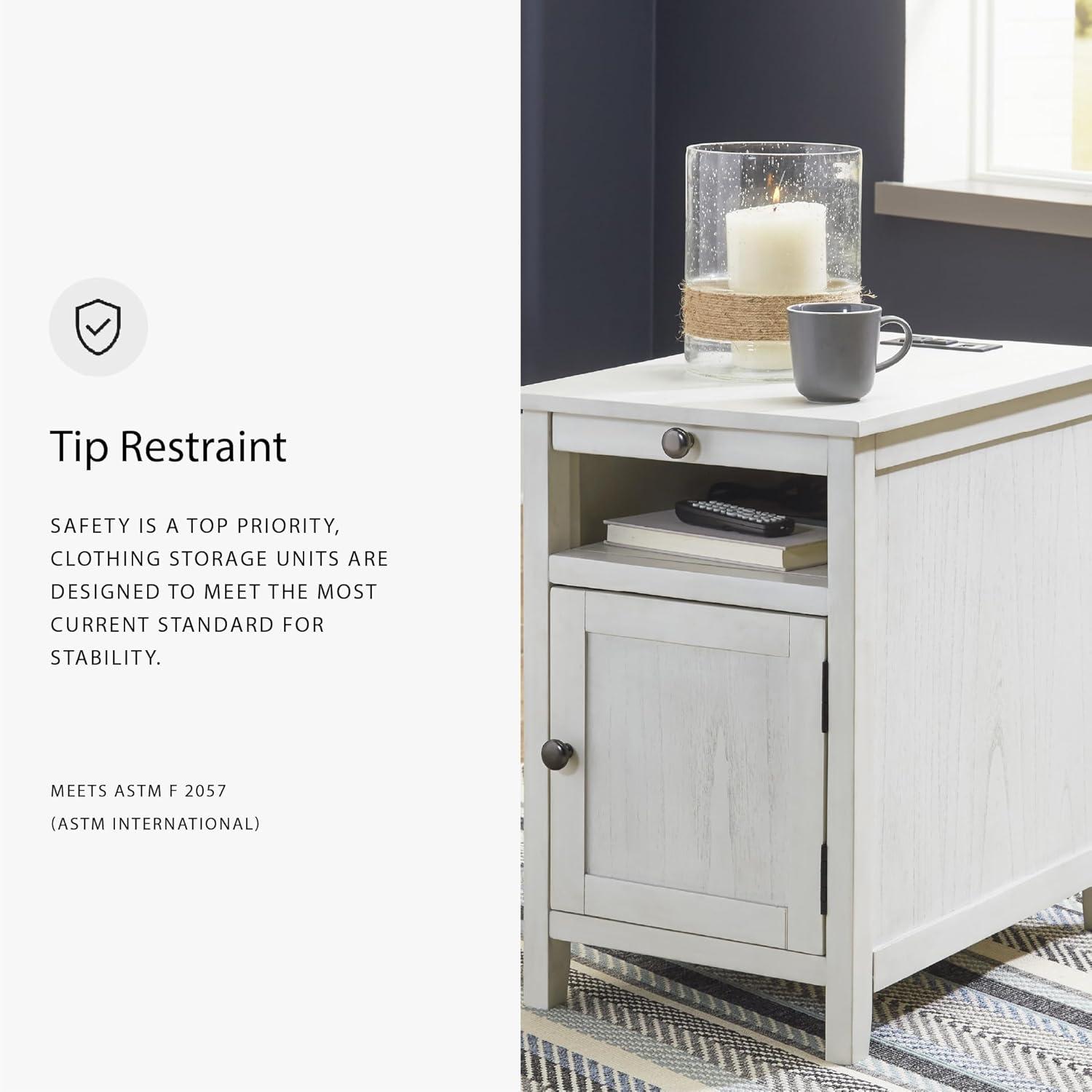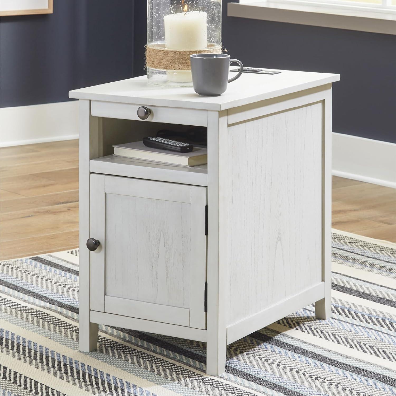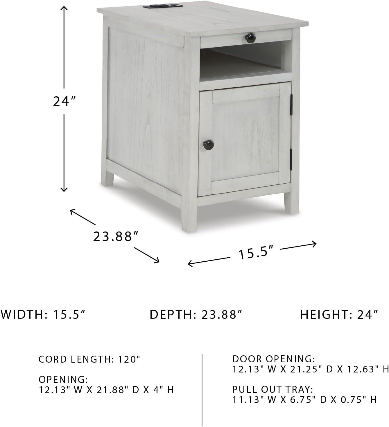 Signature Design by Ashley Treytown Casual Compact Chairside End Table with a Storage Cabinet, Open Cubby Shelf, Pull-Out Tray & USB Charging Ports, Brown(Whitewash)