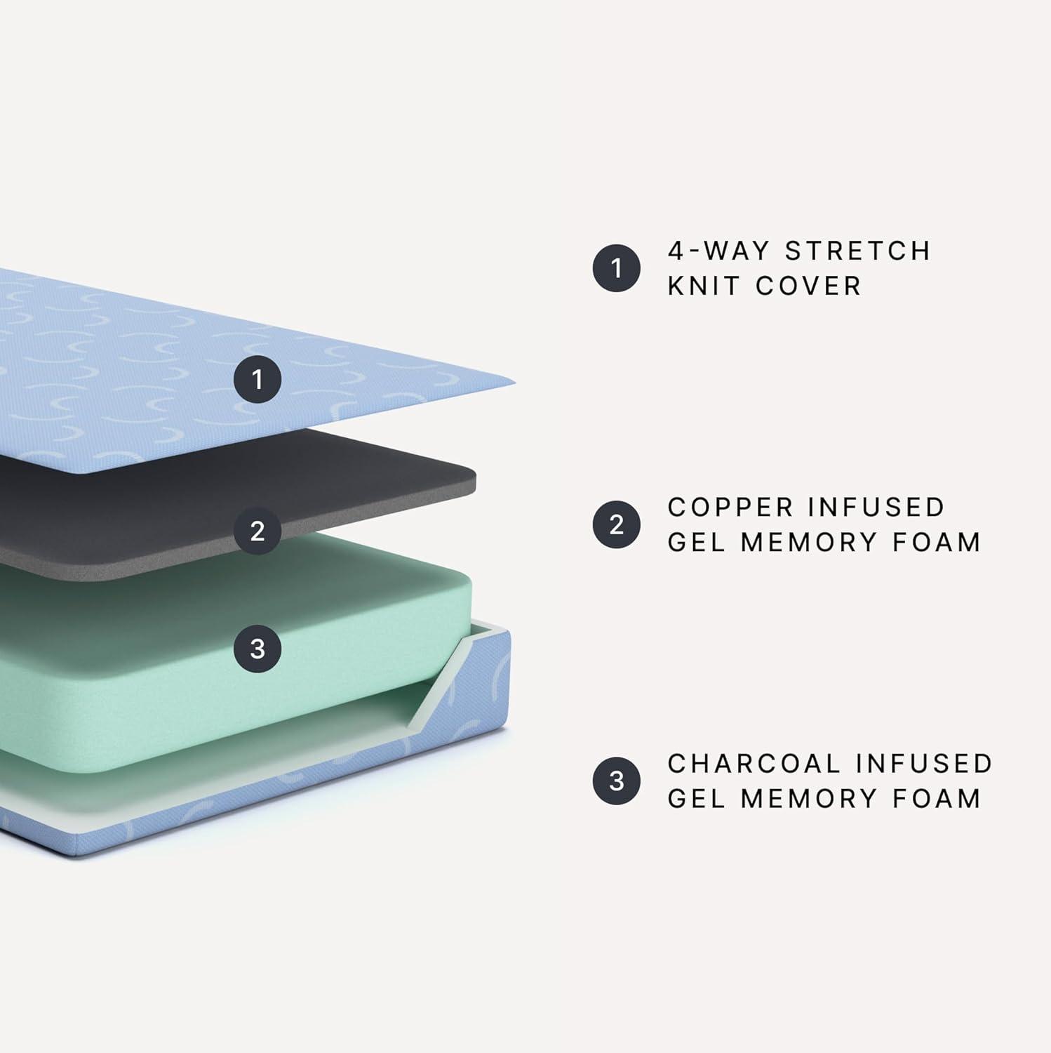 8 INCH PROFILE: Designed with layers of memory foam for support and pressure relief, all with a comfortable feel. Charcoal gel wicks away sweat while green tea support foam provides a fresh restful feel