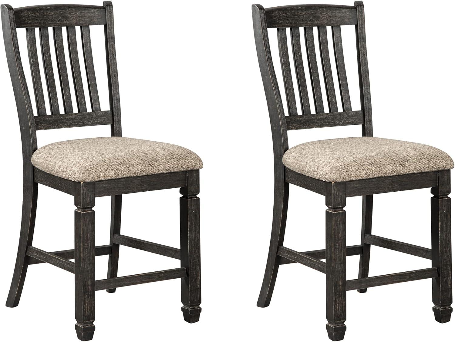 Signature Design by Ashley Tyler Creek Farmhouse 24.38″ Counter Height Upholstered Barstool, Set of 2, Almost Black