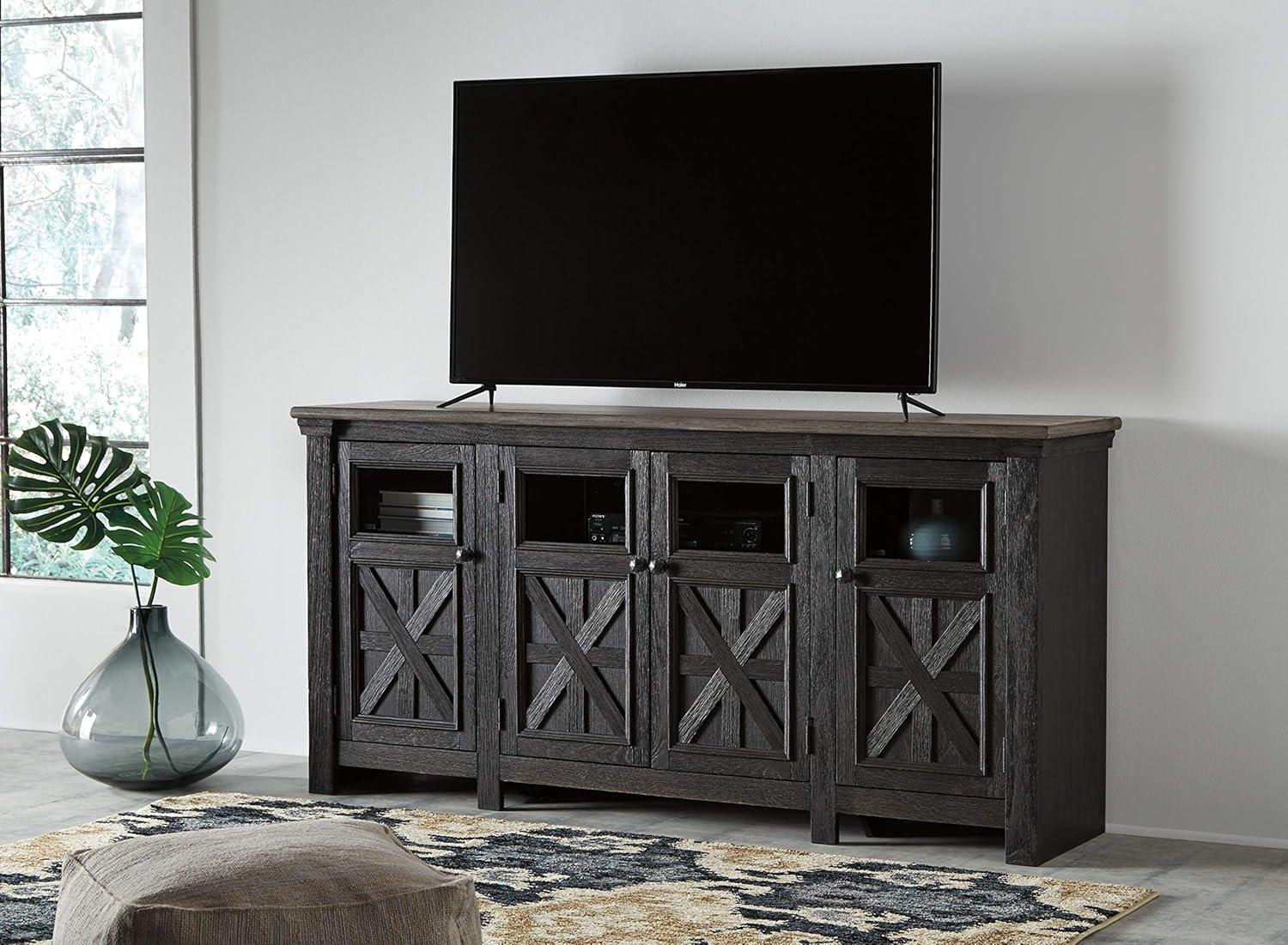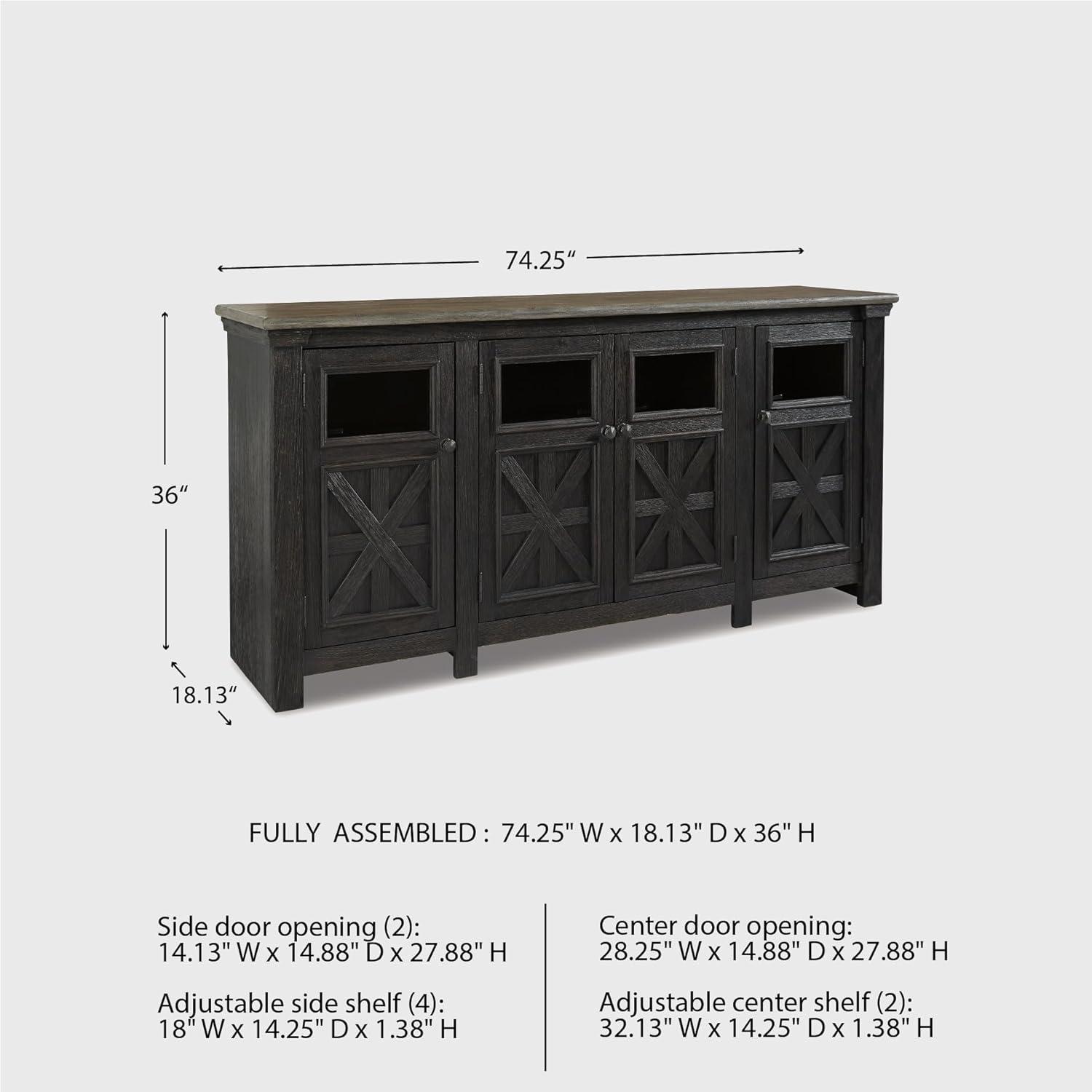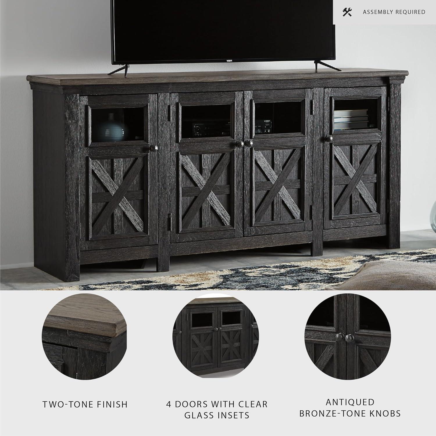 Signature Design by Ashley Tyler Creek Farmhouse TV Stand Fits TVs up to 72″, 4 Glass Doors, 3 Adjustable Storage Shelves, Dark Gray(TV Stand)