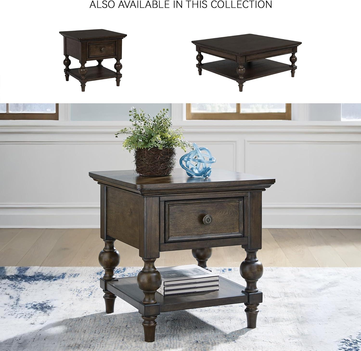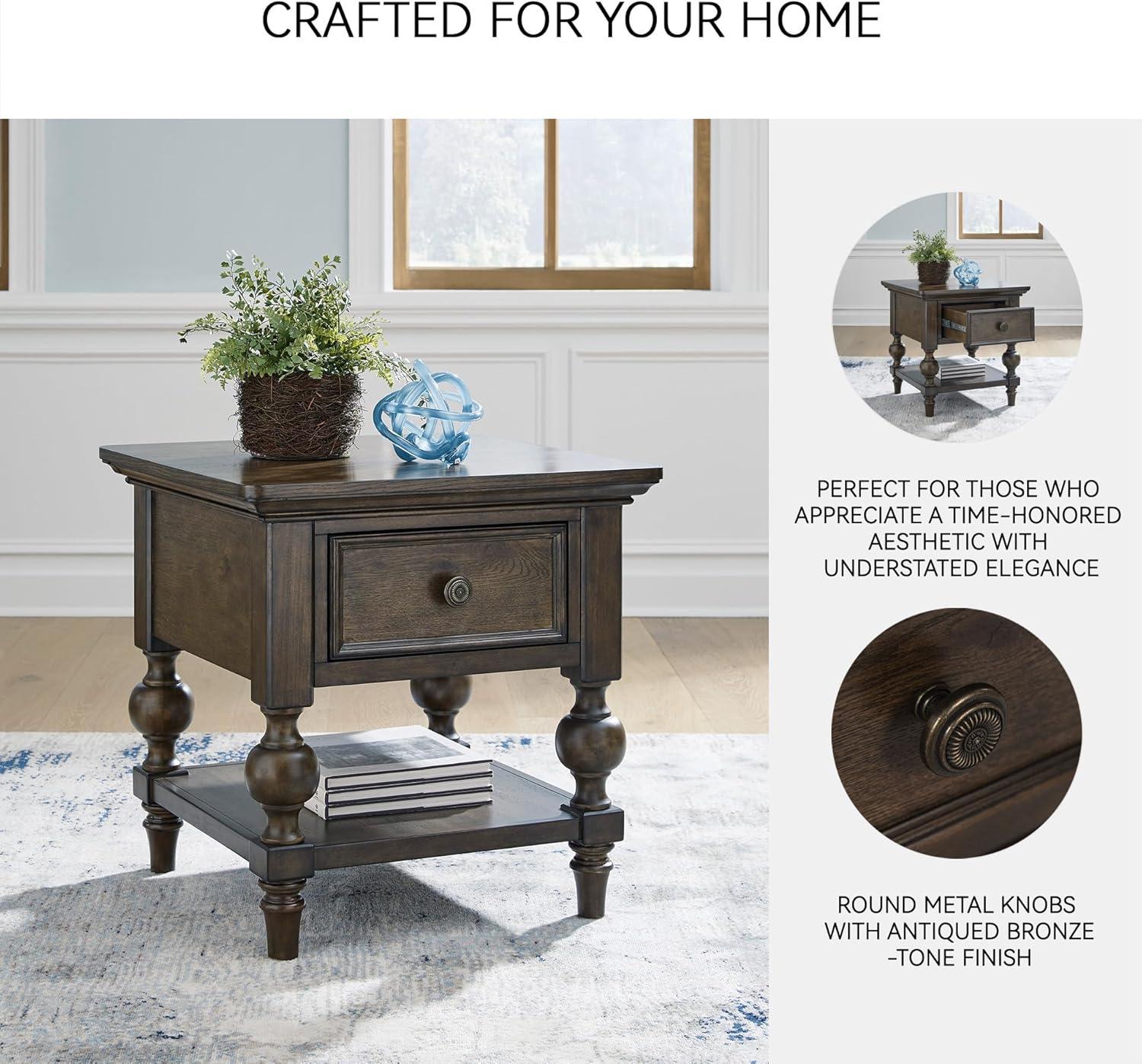 Signature Design by Ashley Veramond Traditional End Table with Drawer and Lower Shelf, Dark Brown